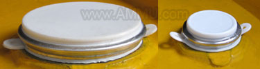 Plastic cap-seals with metal ring crimped on a drum using our crimping tool.